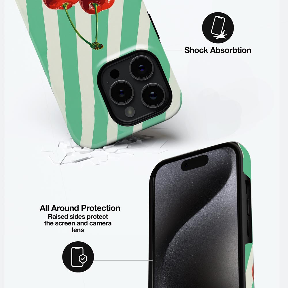 Fresh-picked fun. Cherry Mint pops with glossy red cherries over wavy mint stripes. Sweet, cheeky, and made to stand out.