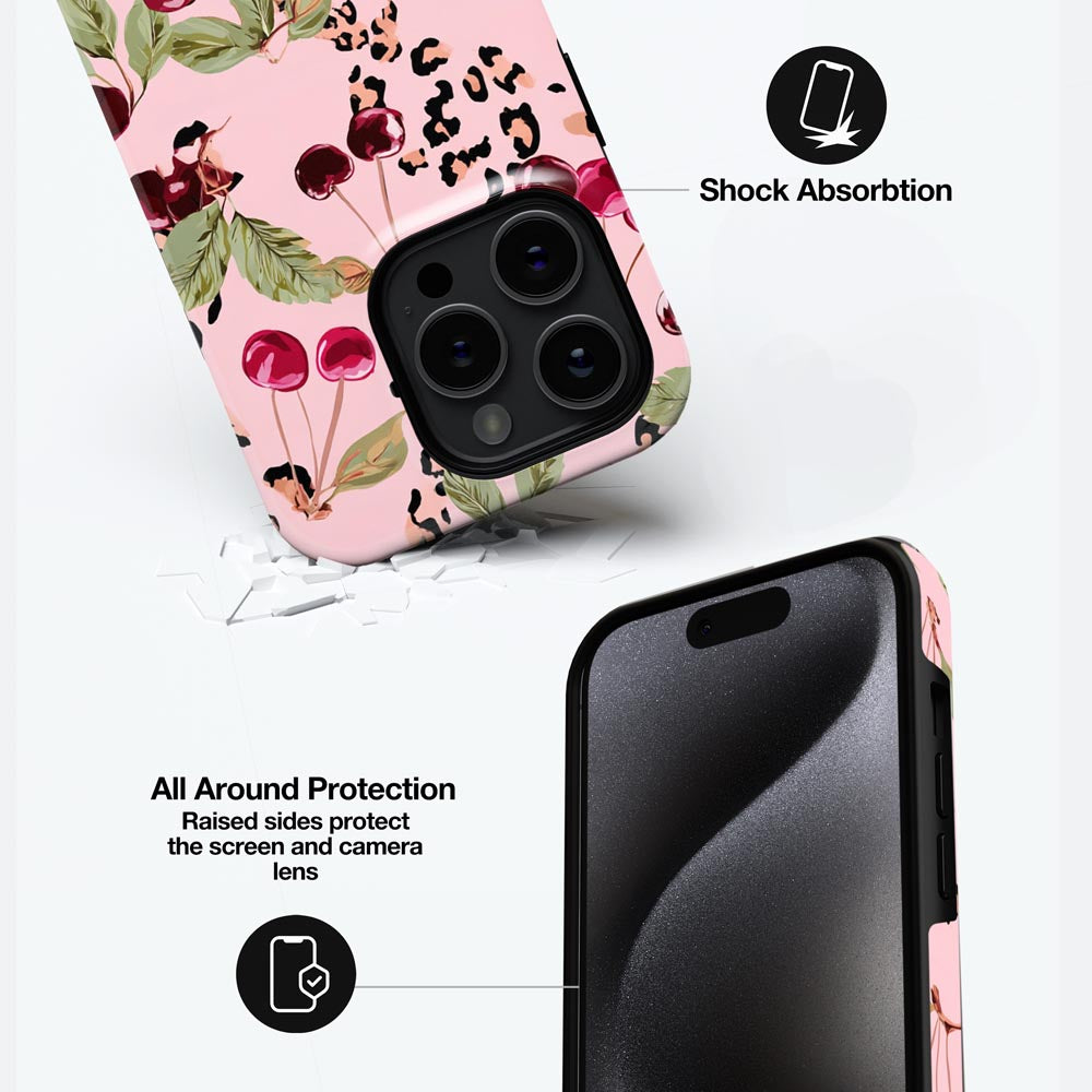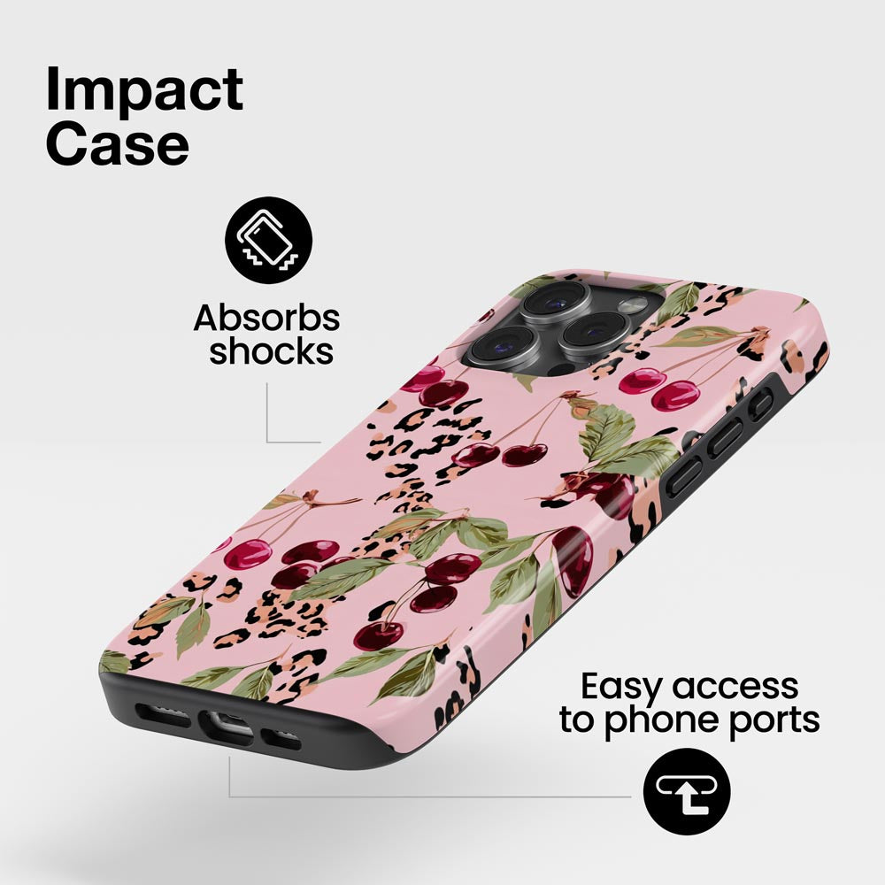 Wild but sweet. Cherry Wild is where juicy cherries meet soft leopard print on pastel pink. A little glam, a little wild girl energy.
