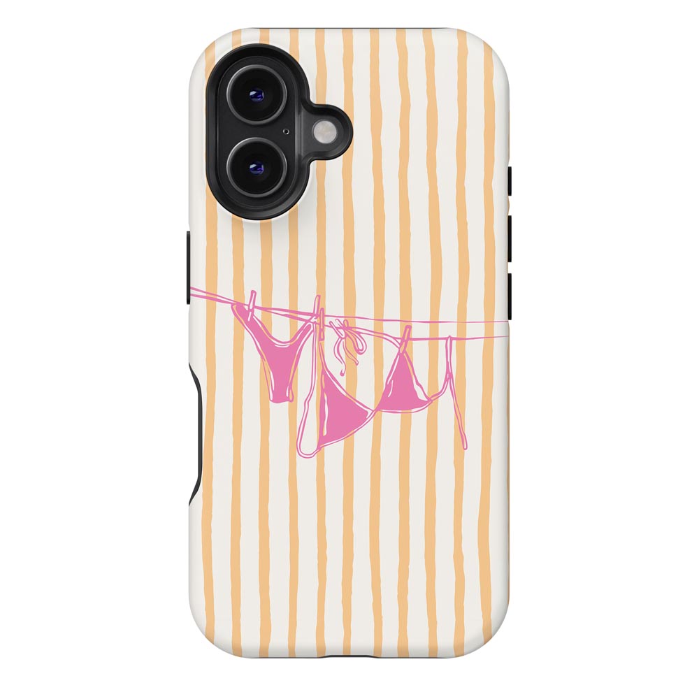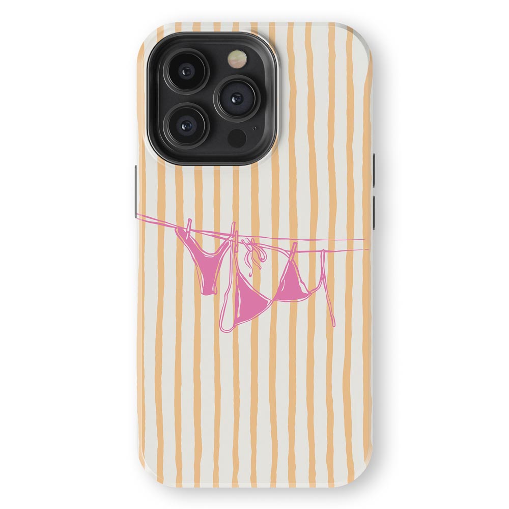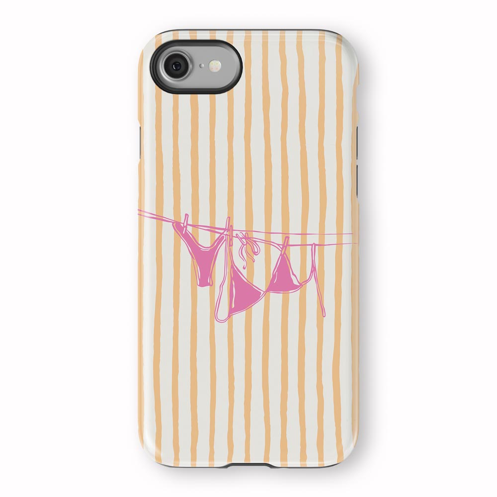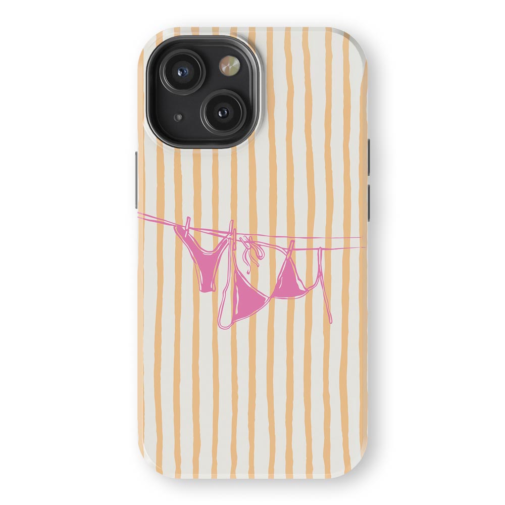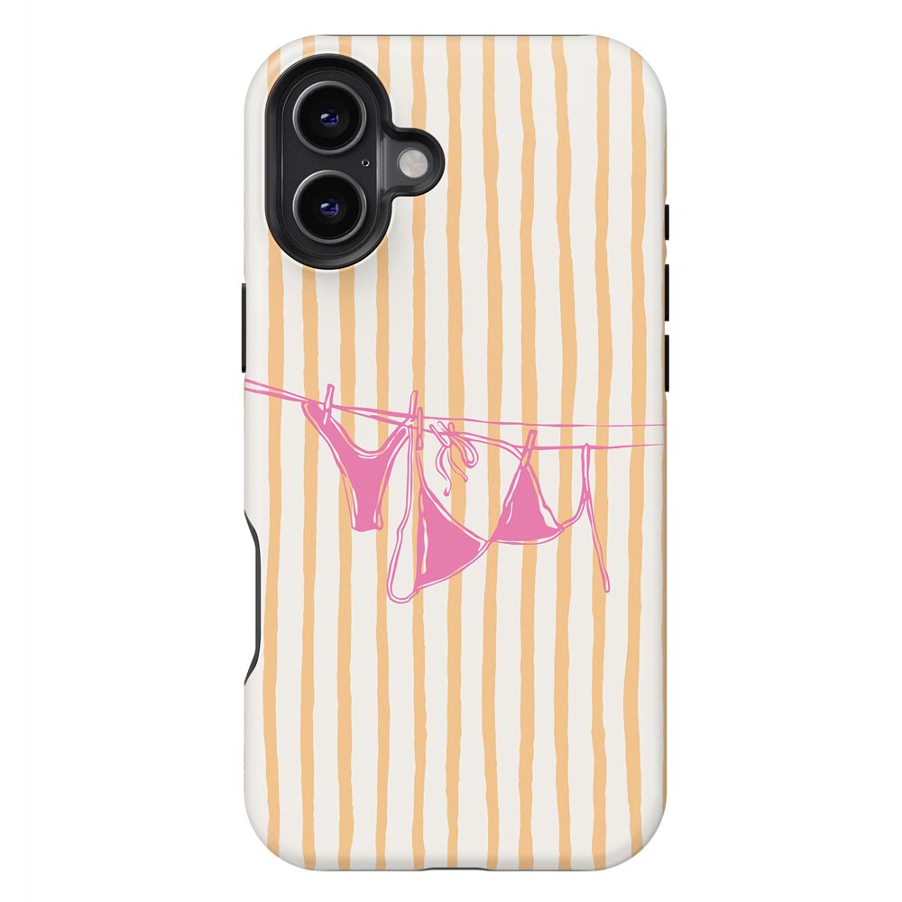 Cheeky and cute! Peach Wash gives summer holiday vibes with retro stripes and a bright pink bikini hanging out to dry. Totally beach babe-approved.