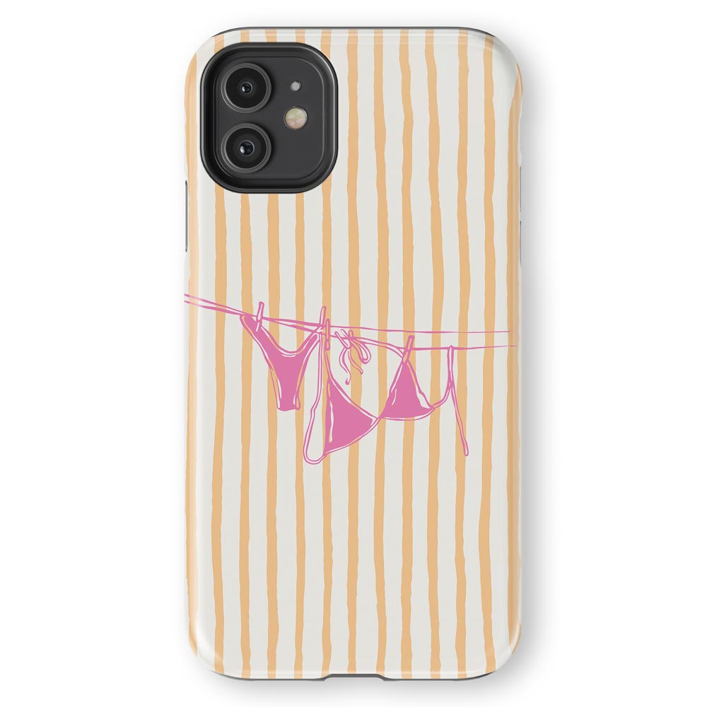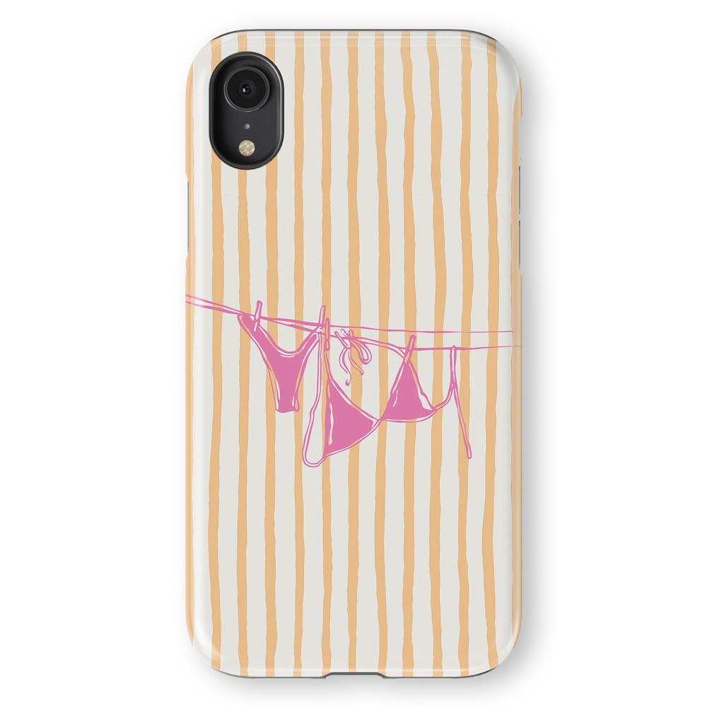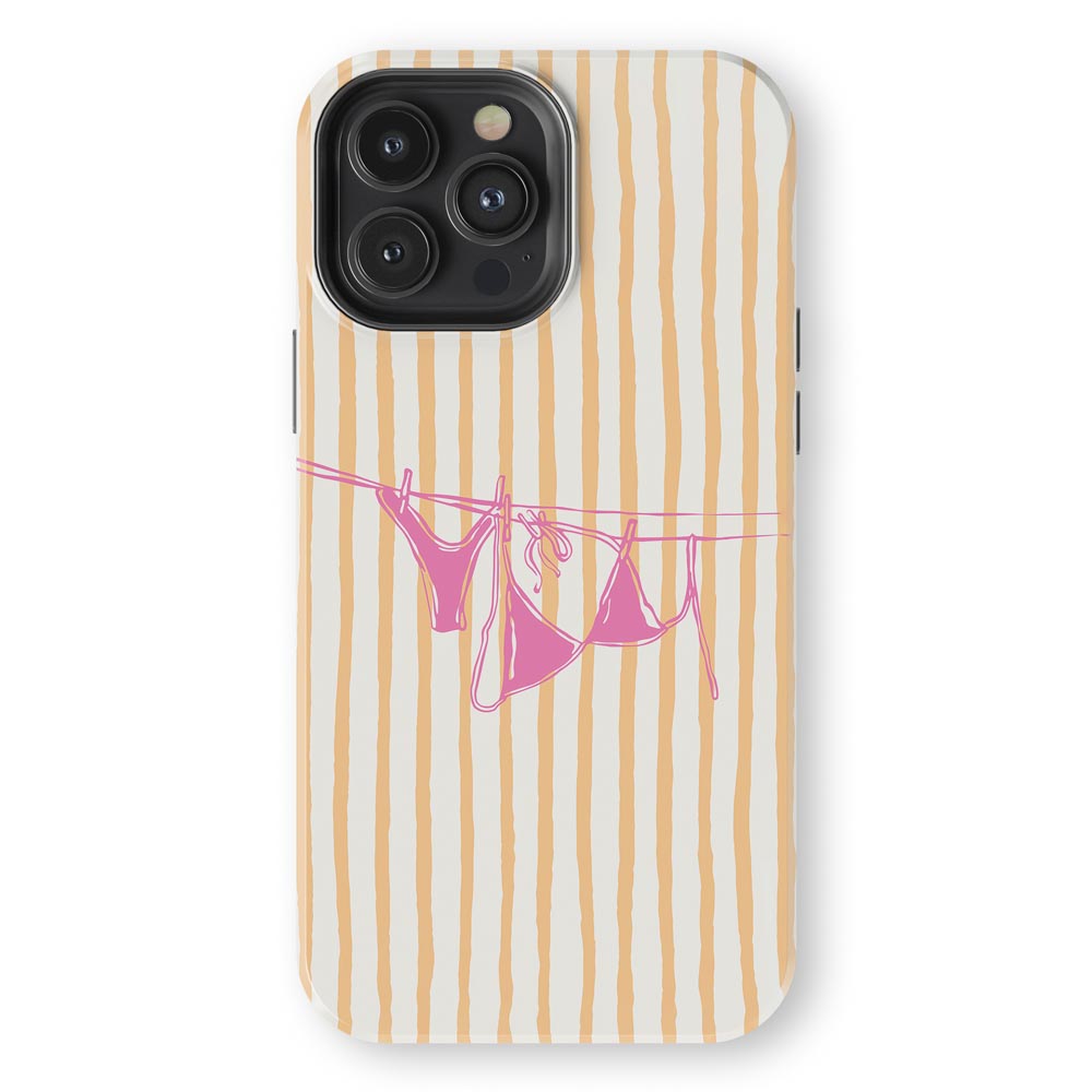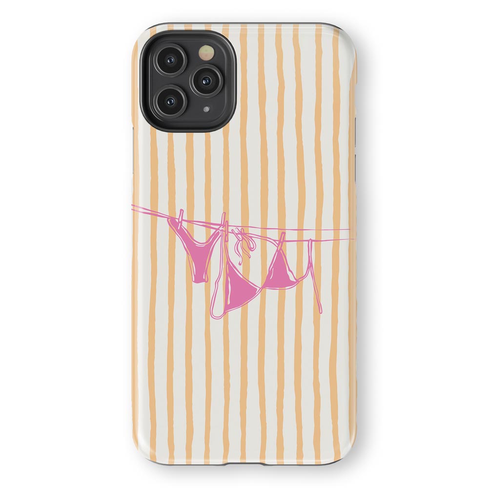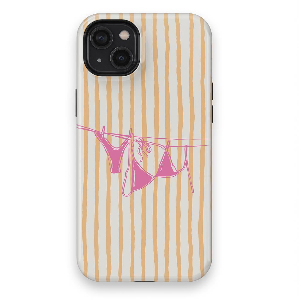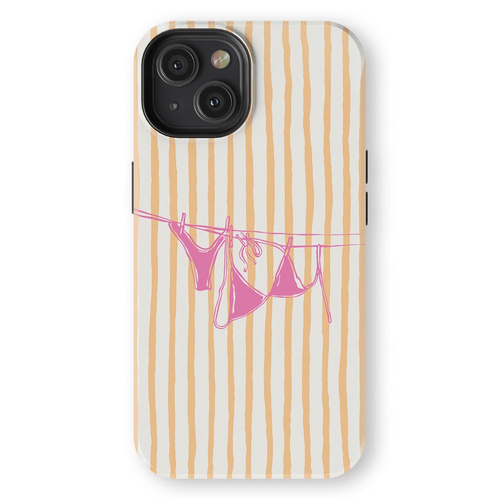 Cheeky and cute! Peach Wash gives summer holiday vibes with retro stripes and a bright pink bikini hanging out to dry. Totally beach babe-approved.