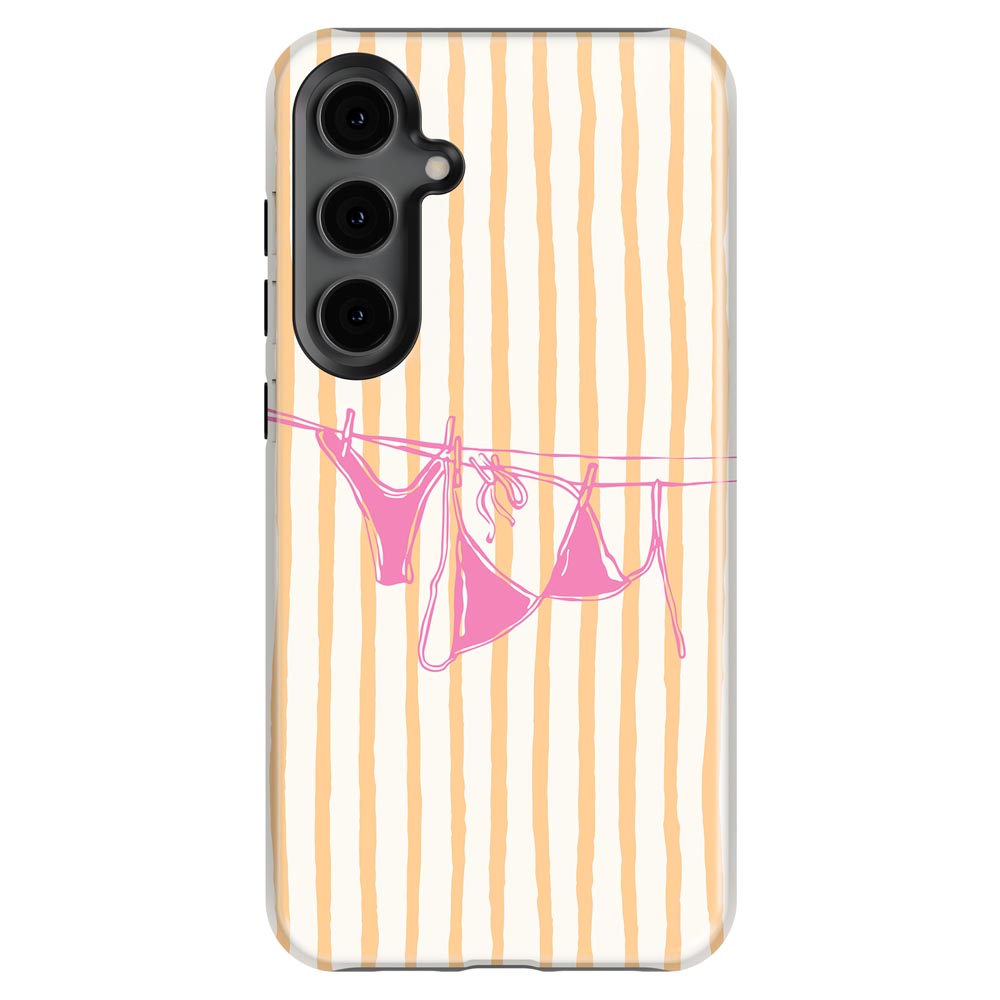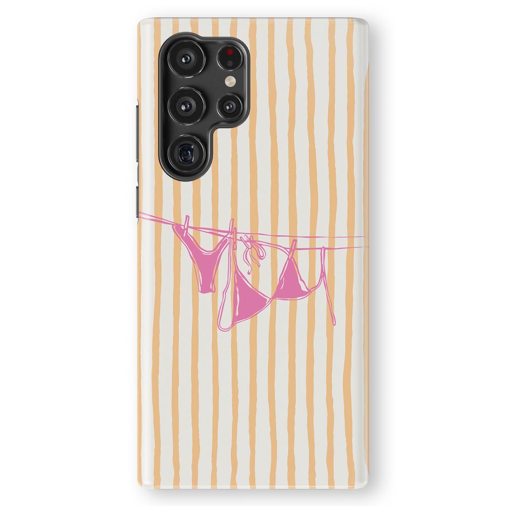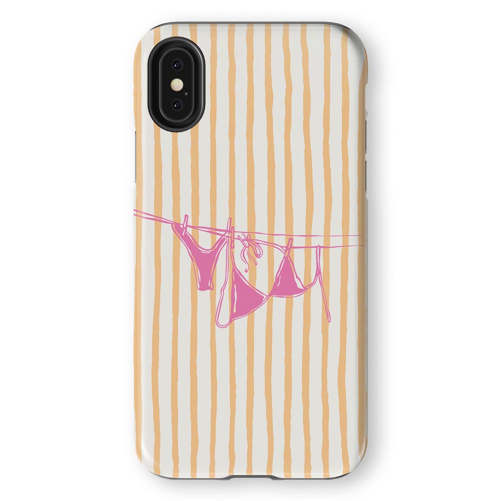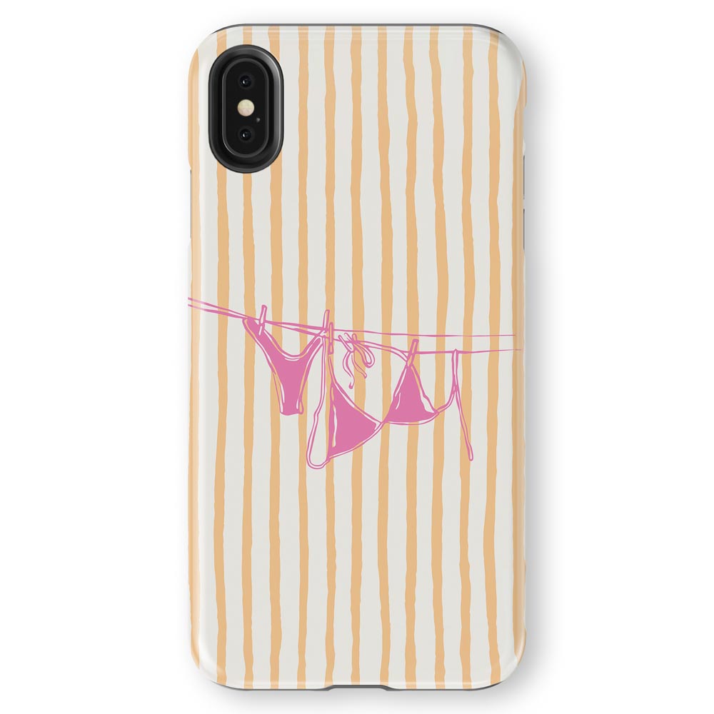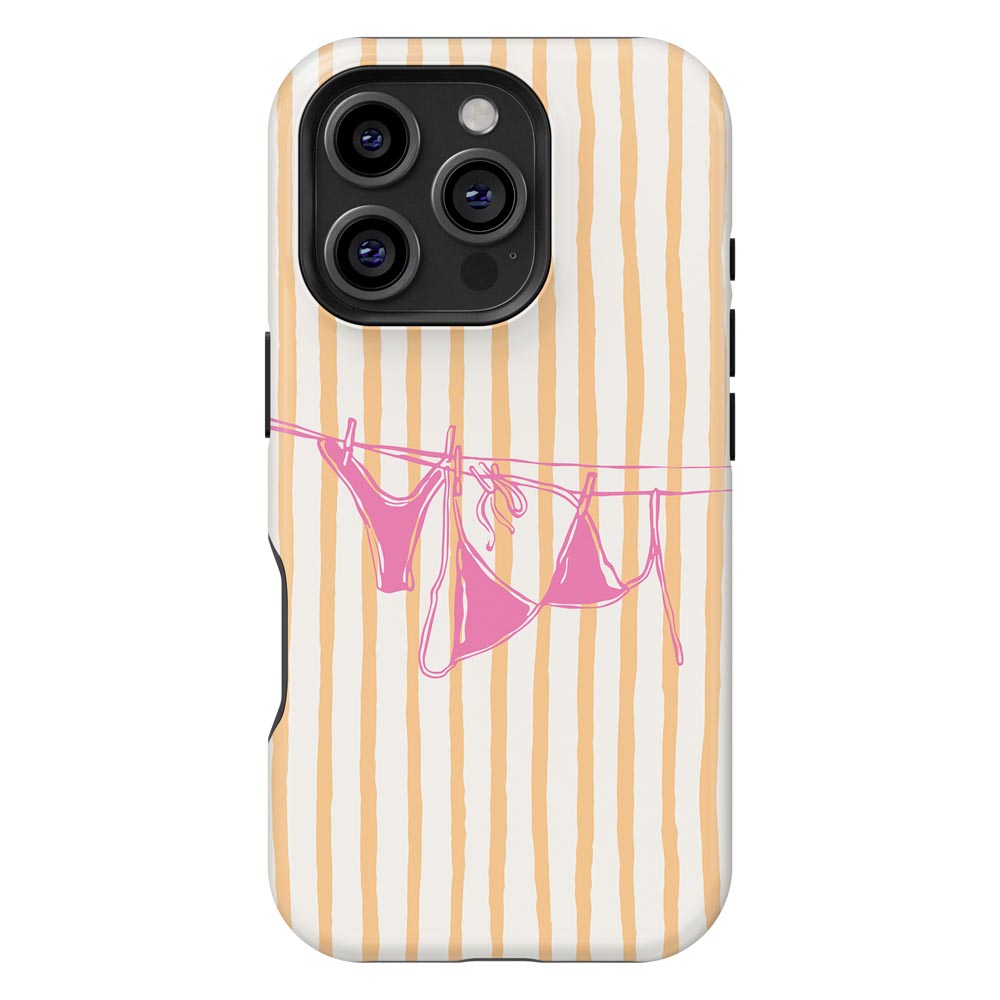 Cheeky and cute! Peach Wash gives summer holiday vibes with retro stripes and a bright pink bikini hanging out to dry. Totally beach babe-approved.