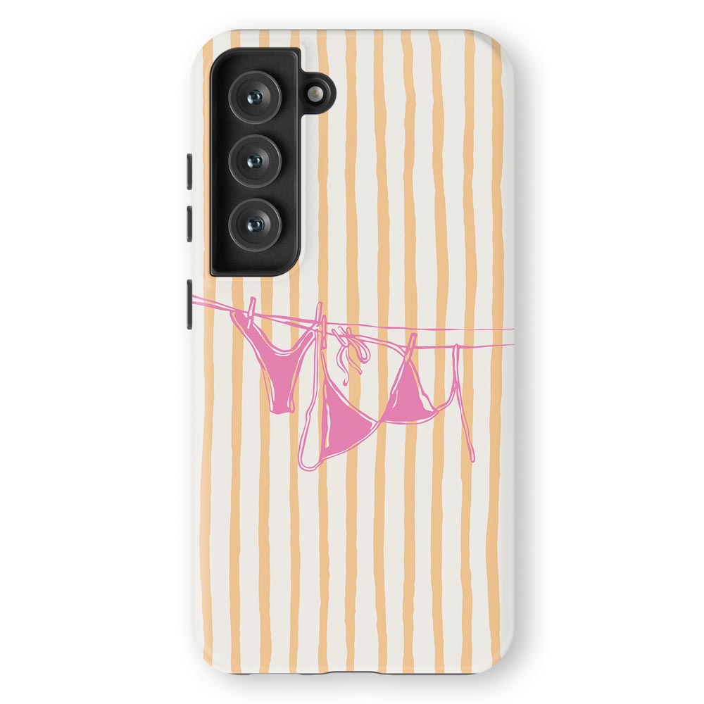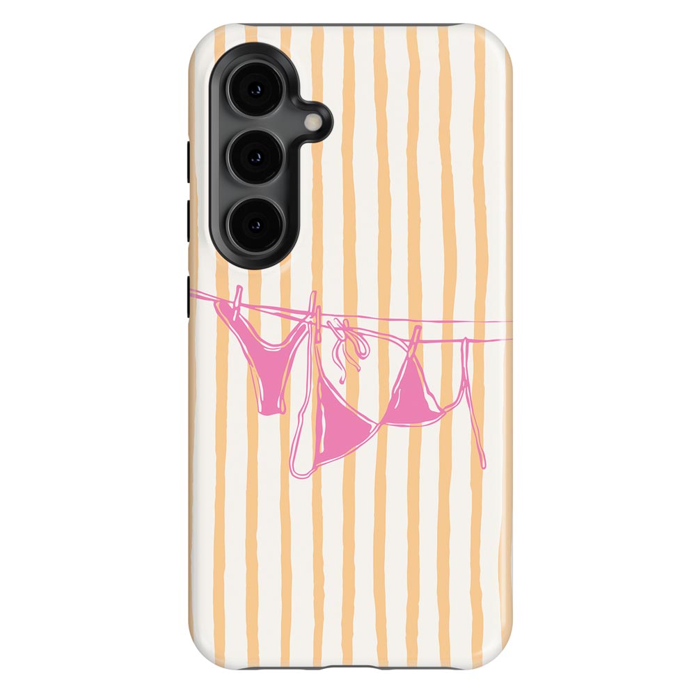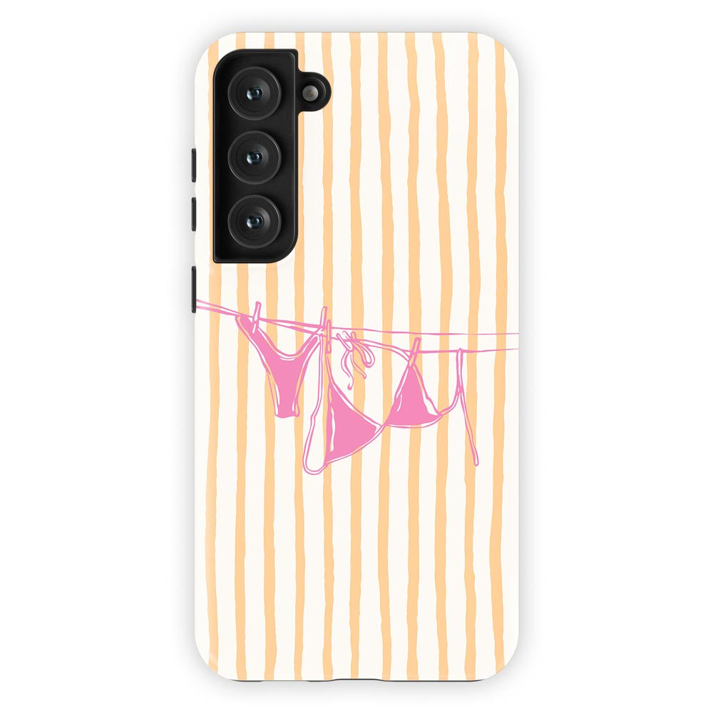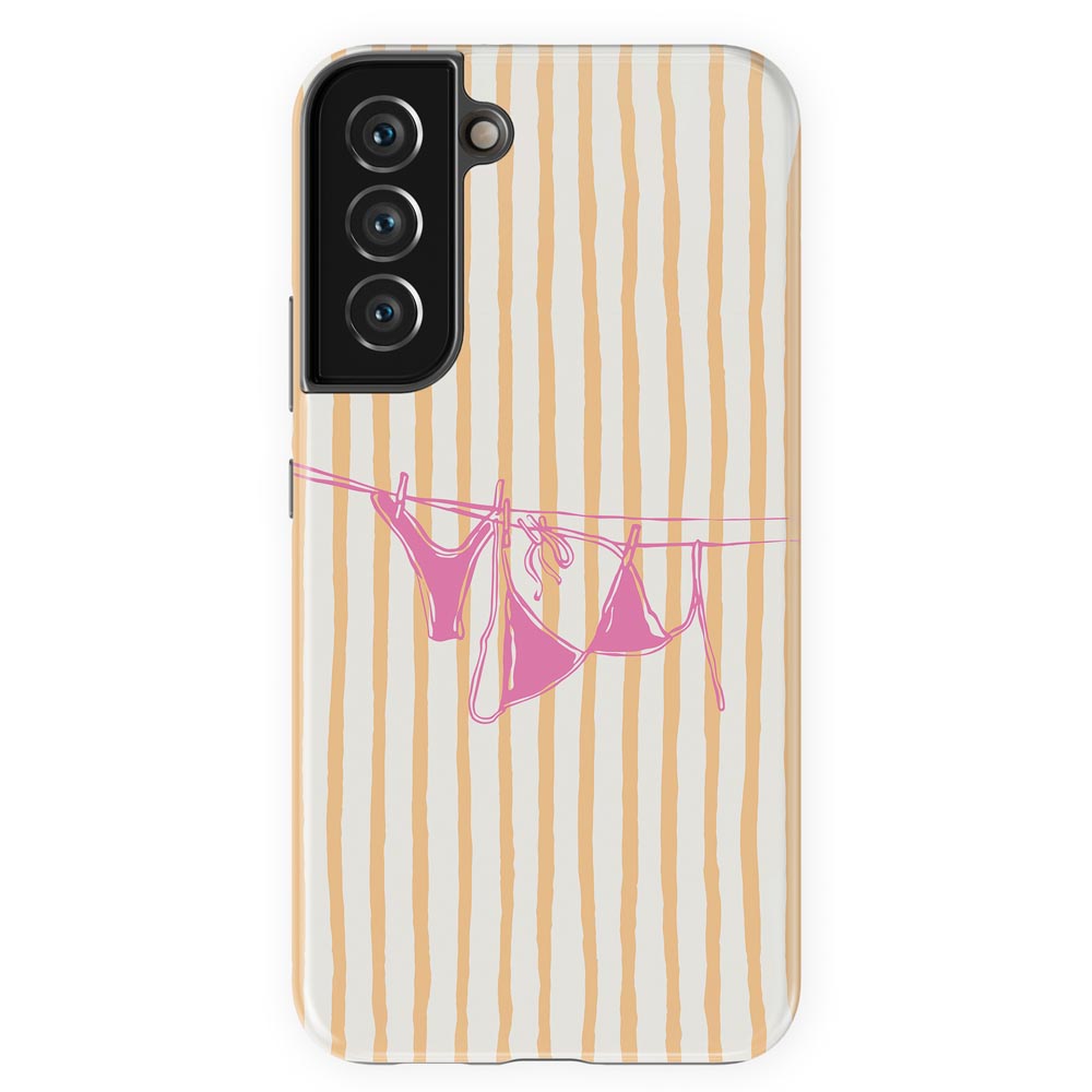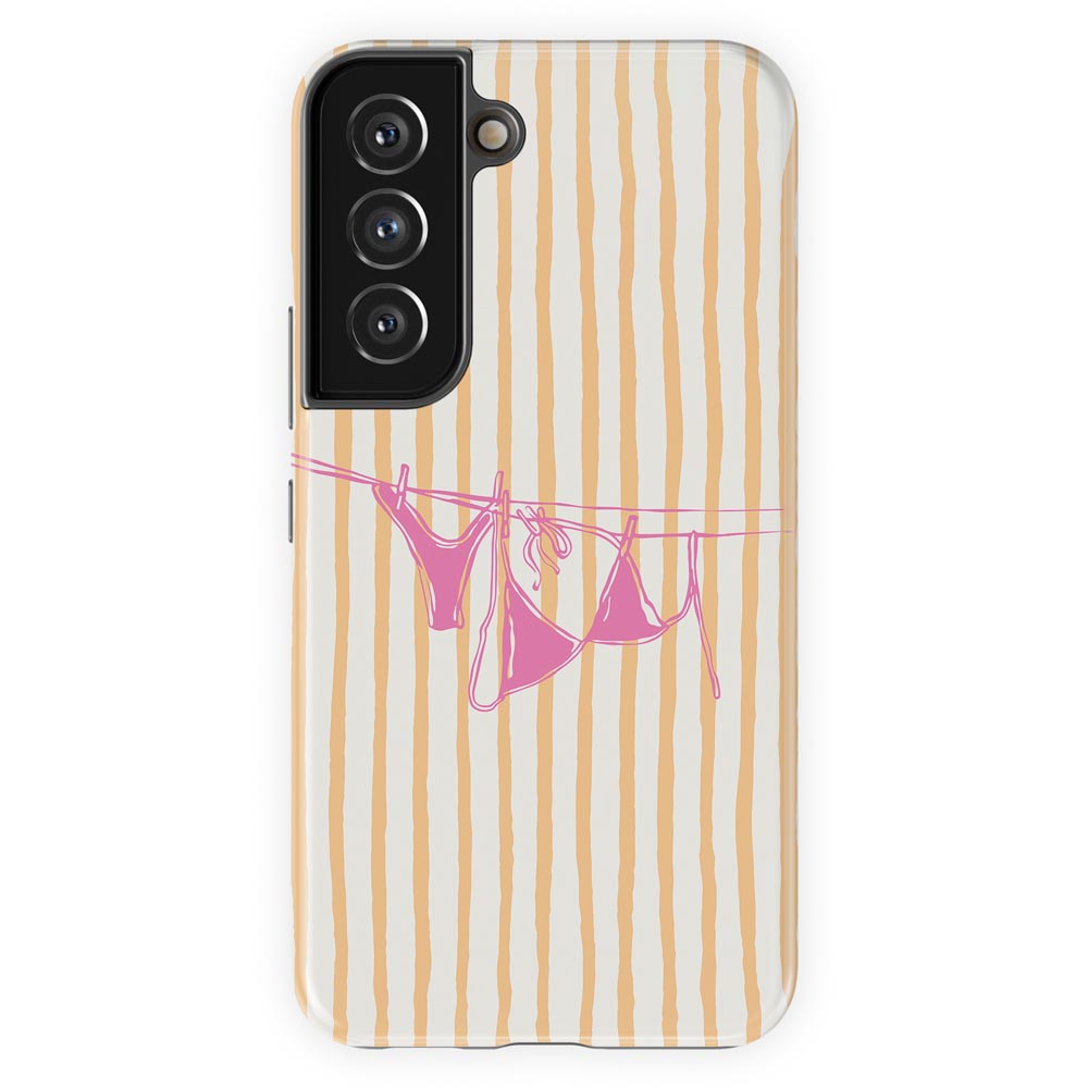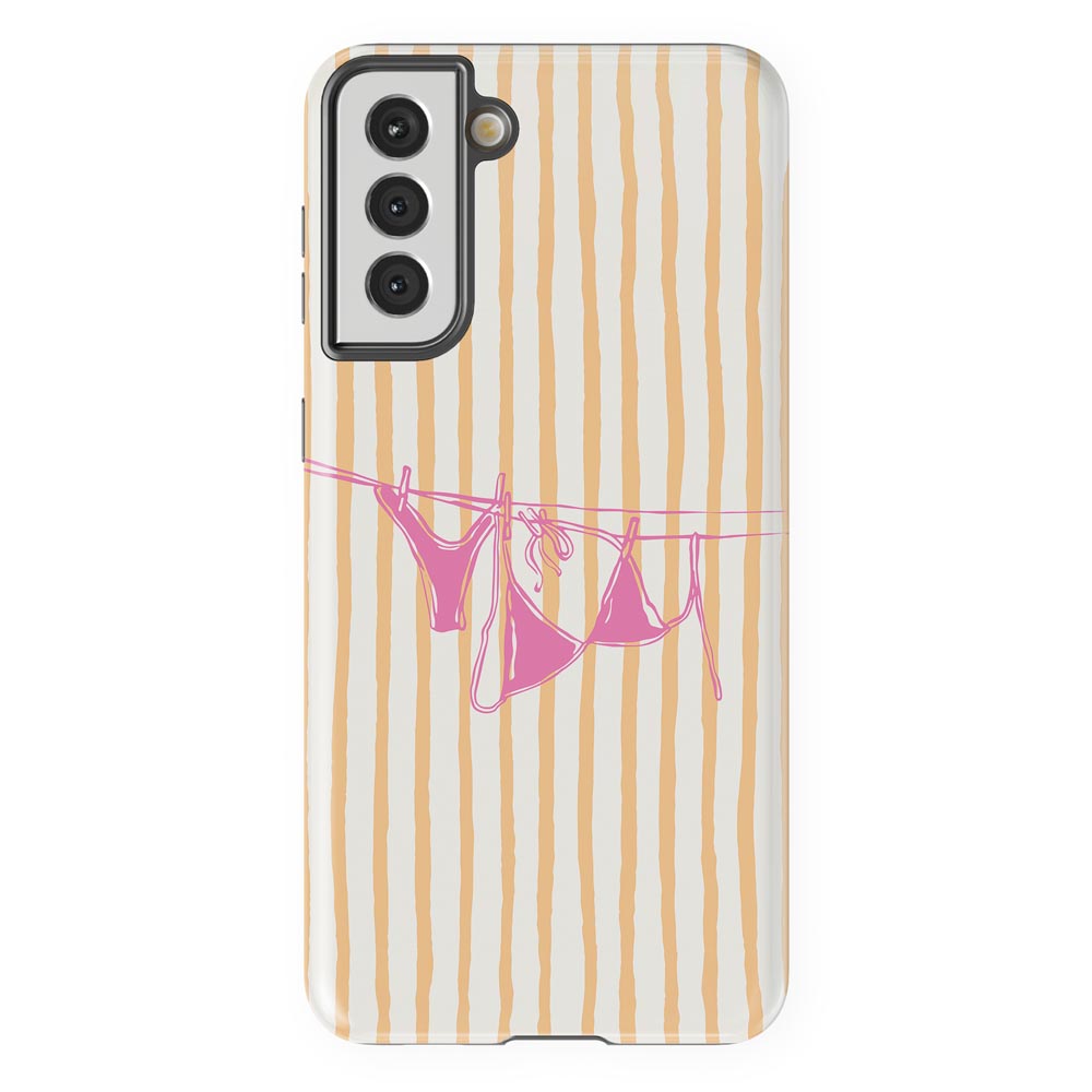 Cheeky and cute! Peach Wash gives summer holiday vibes with retro stripes and a bright pink bikini hanging out to dry. Totally beach babe-approved.