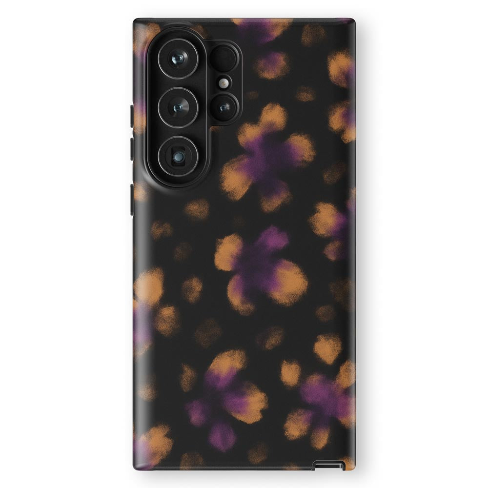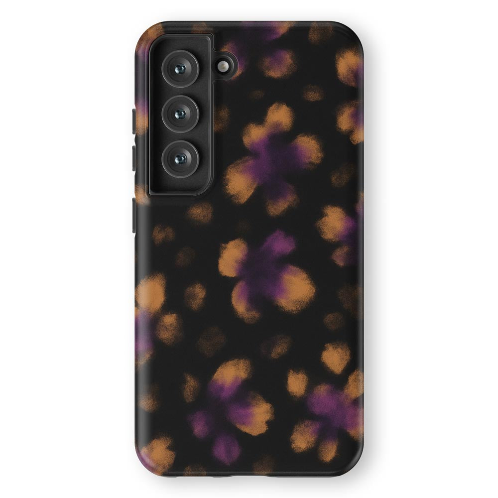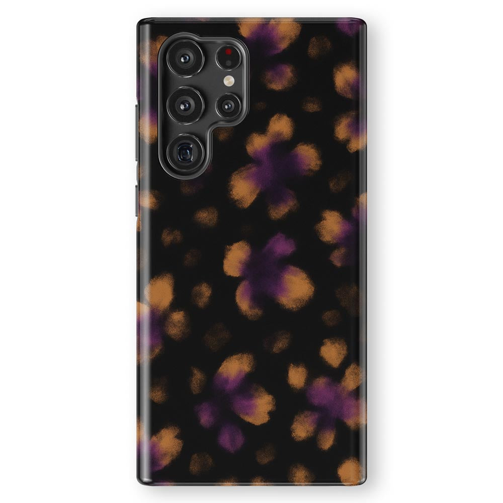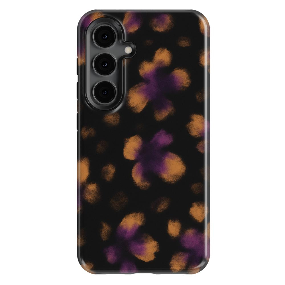 Soft florals meet dark romance in Purple Pansies, a bold blur of violet and burnt orange petals on a black backdrop. Modern moody magic.