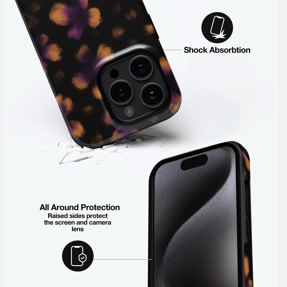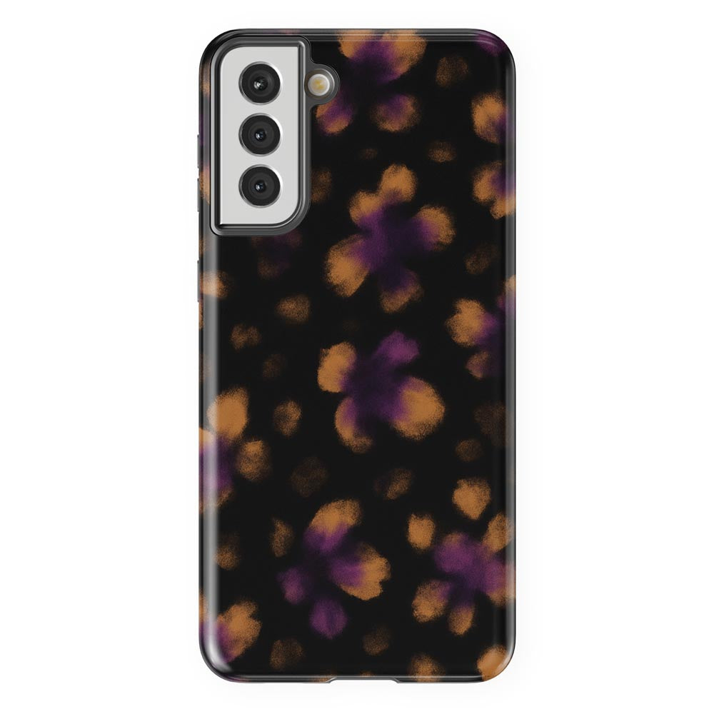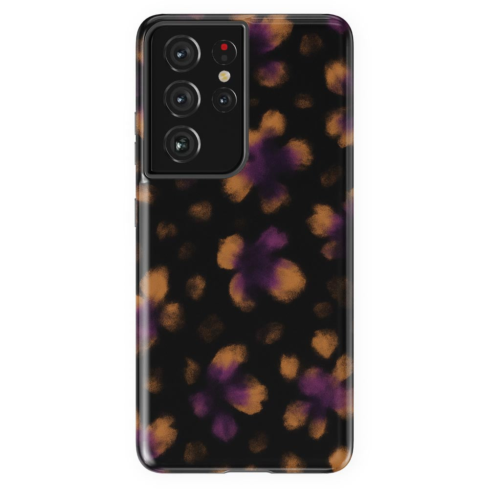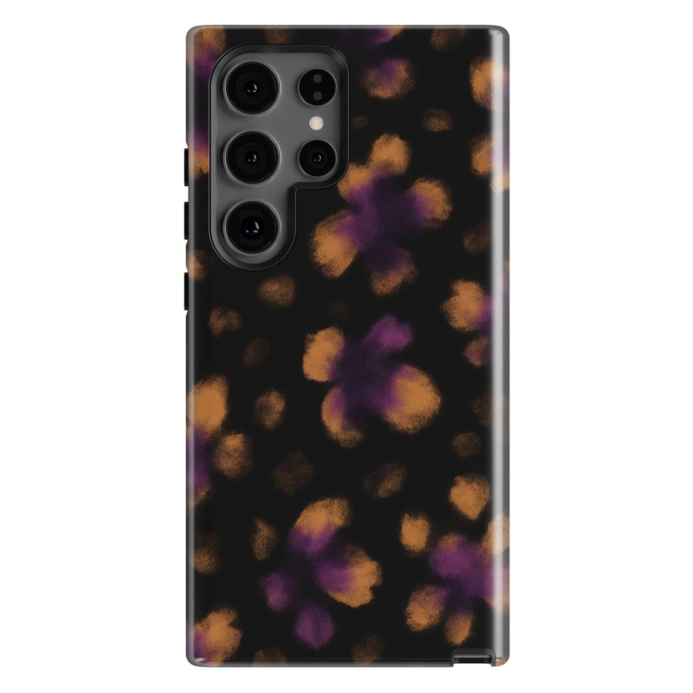 Soft florals meet dark romance in Purple Pansies, a bold blur of violet and burnt orange petals on a black backdrop. Modern moody magic.