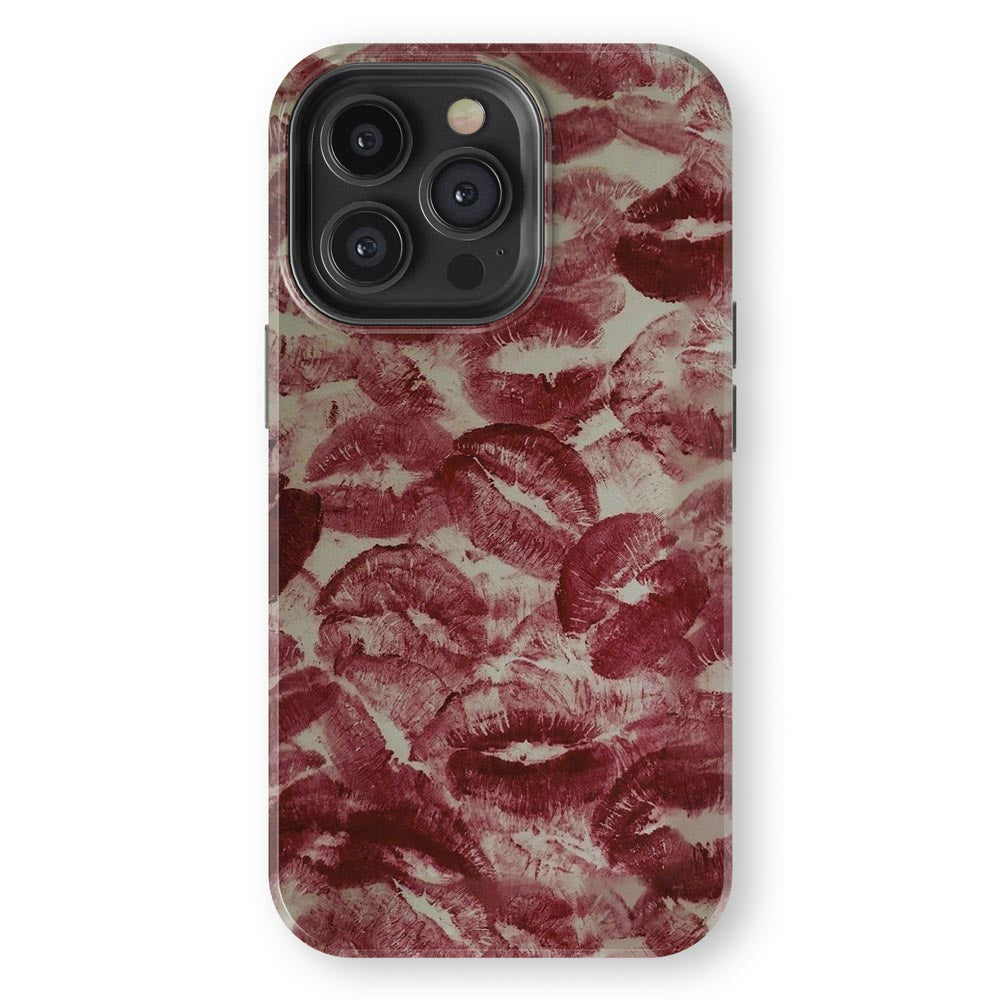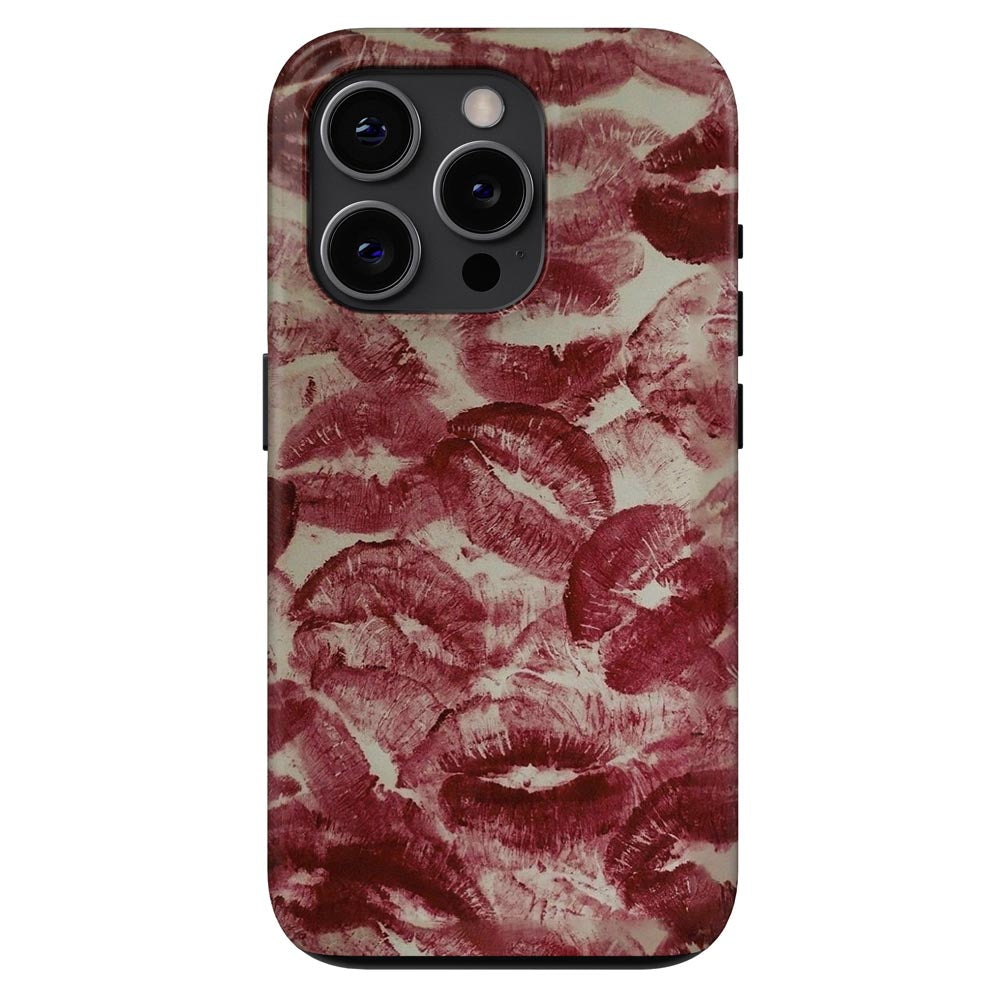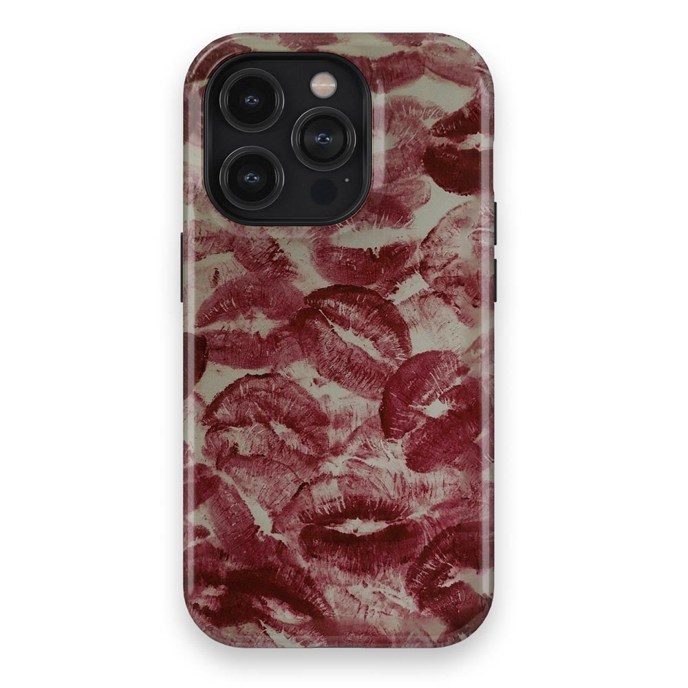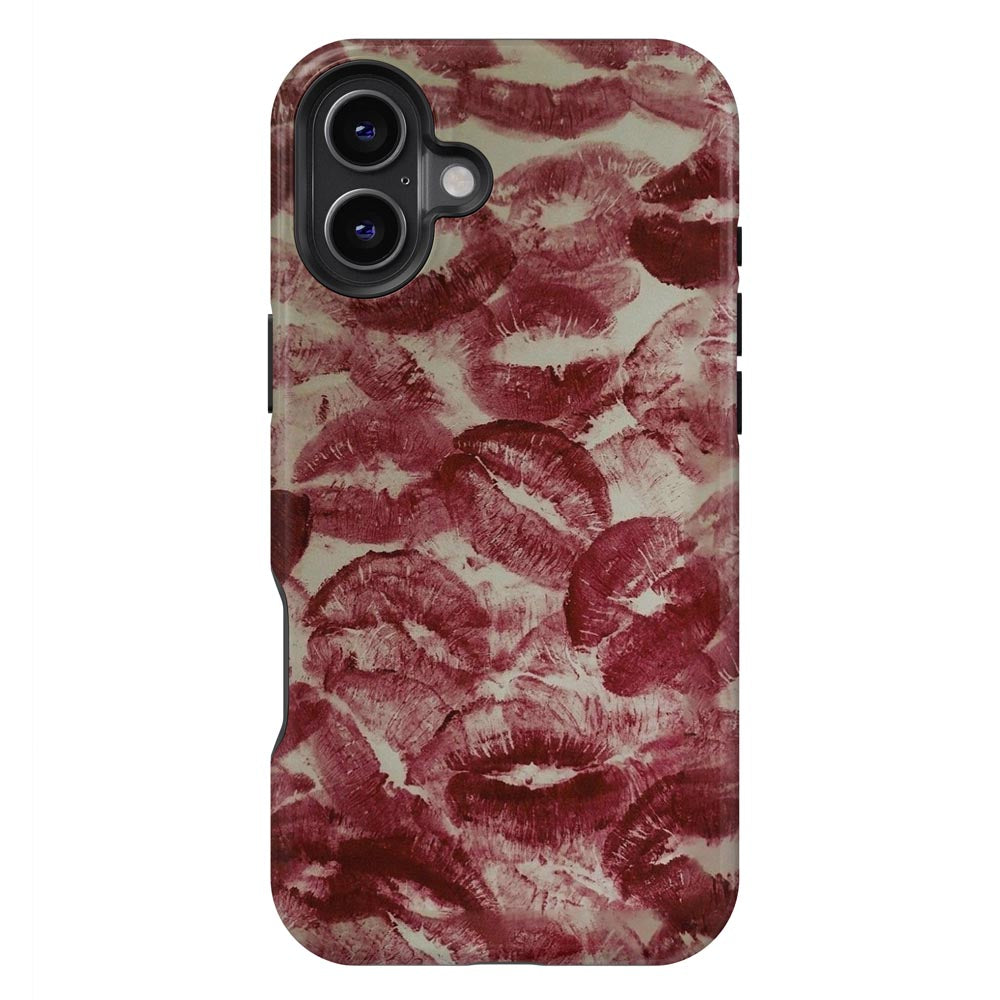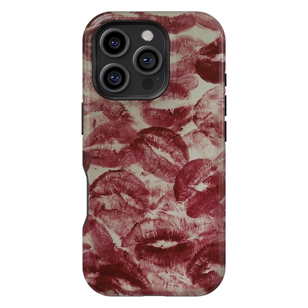 Pucker up for Sealed With A Kiss. This case is covered in luscious lipstick prints in deep berry red—bold, cheeky, and ready to slay. A kiss of confidence for every day.