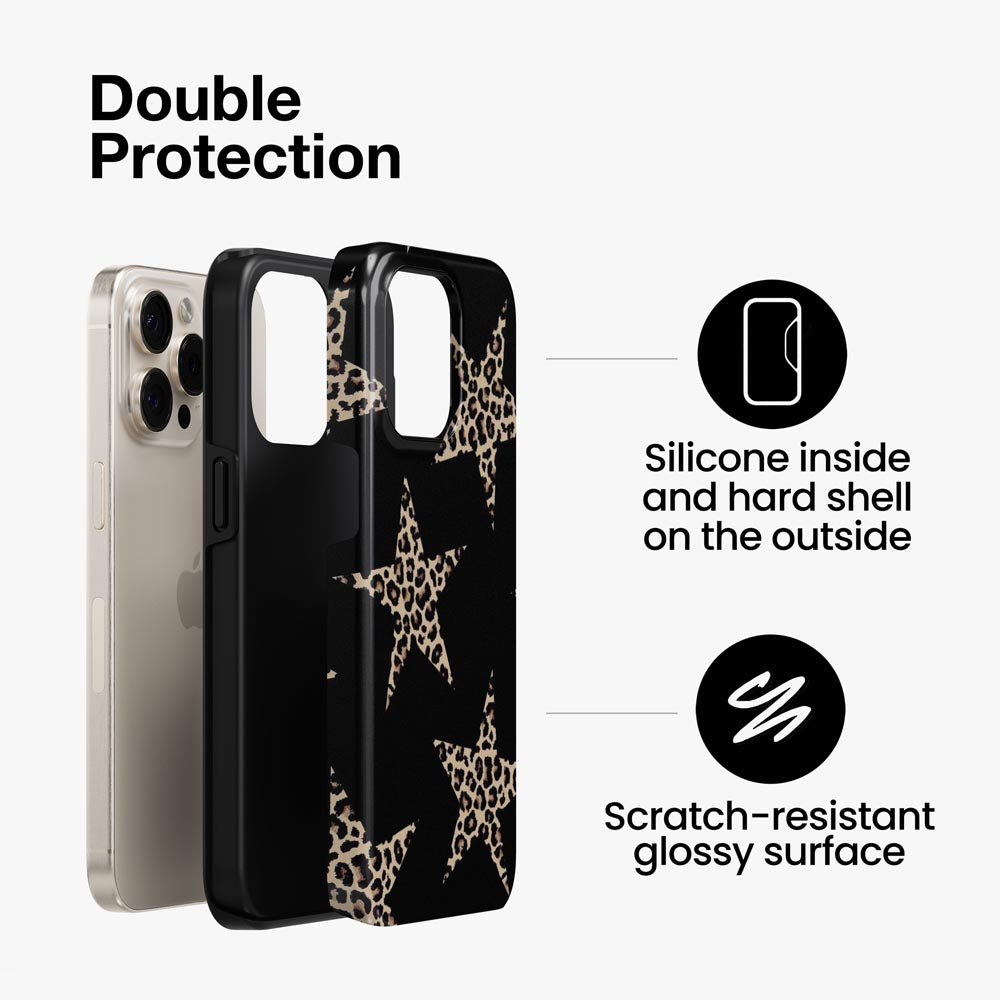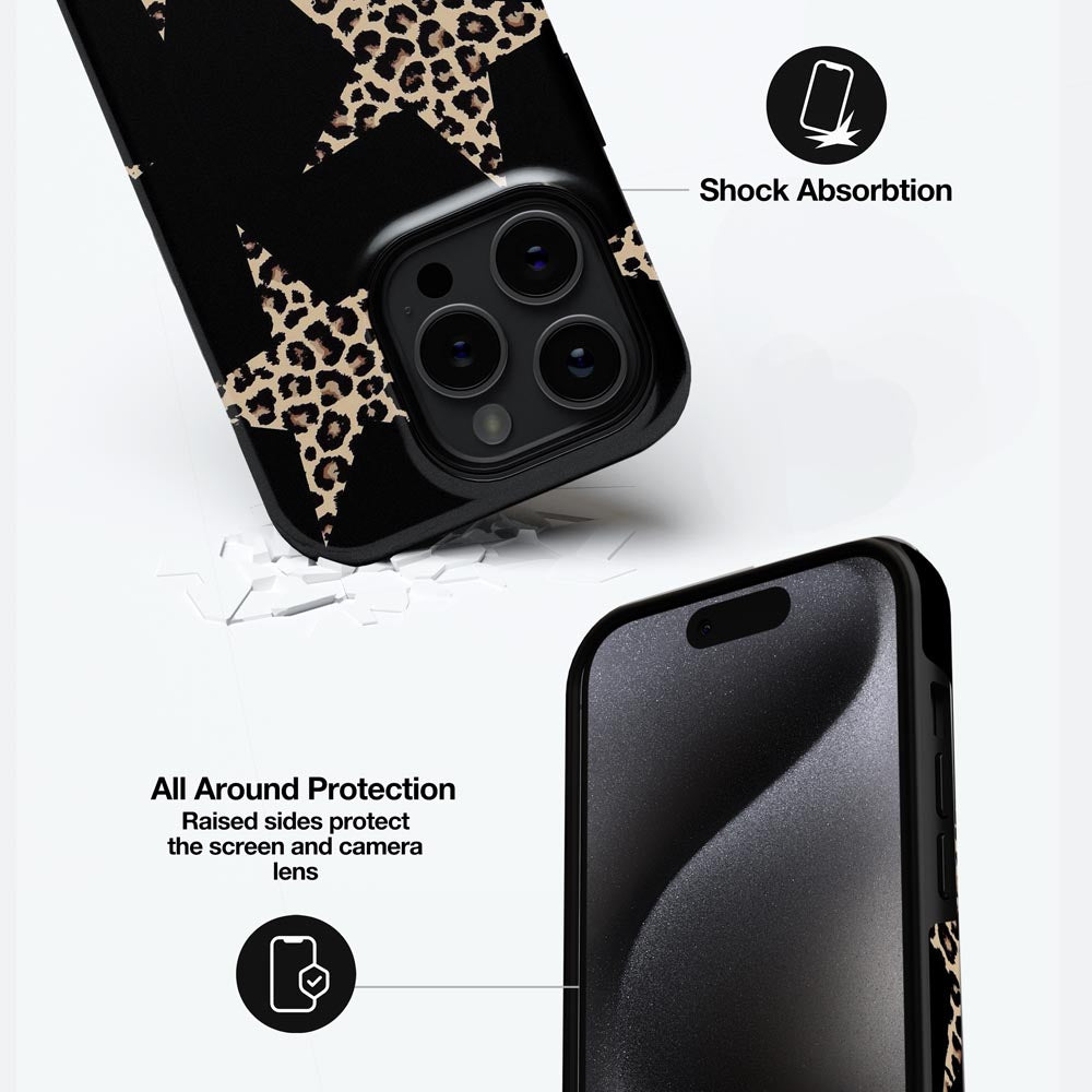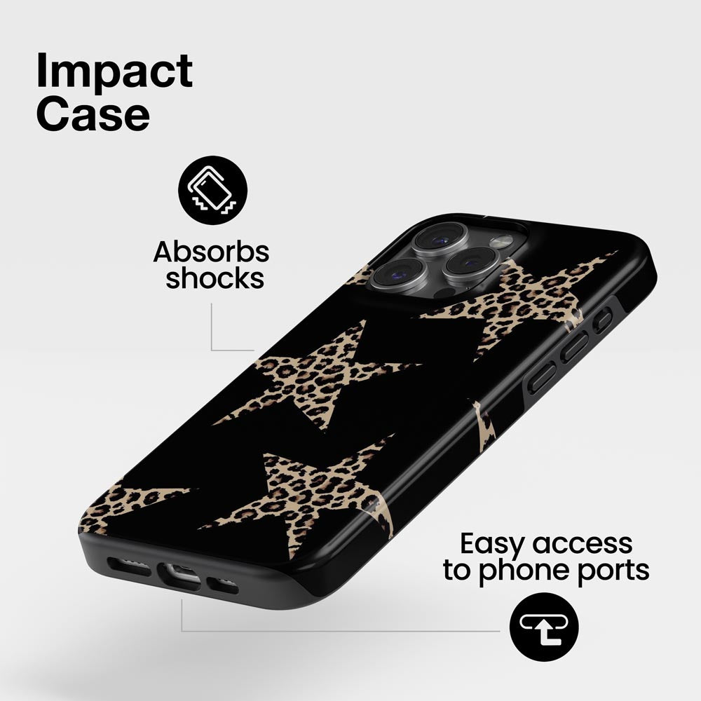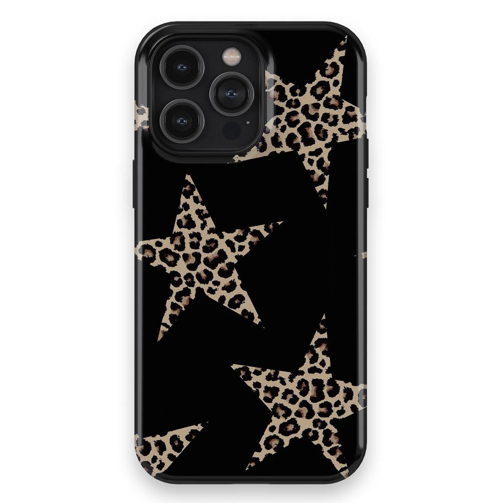 Star power meets fierce energy in Wild Star. Leopard-print stars shine against a black backdrop for a glam, edgy look that roars confidence.
